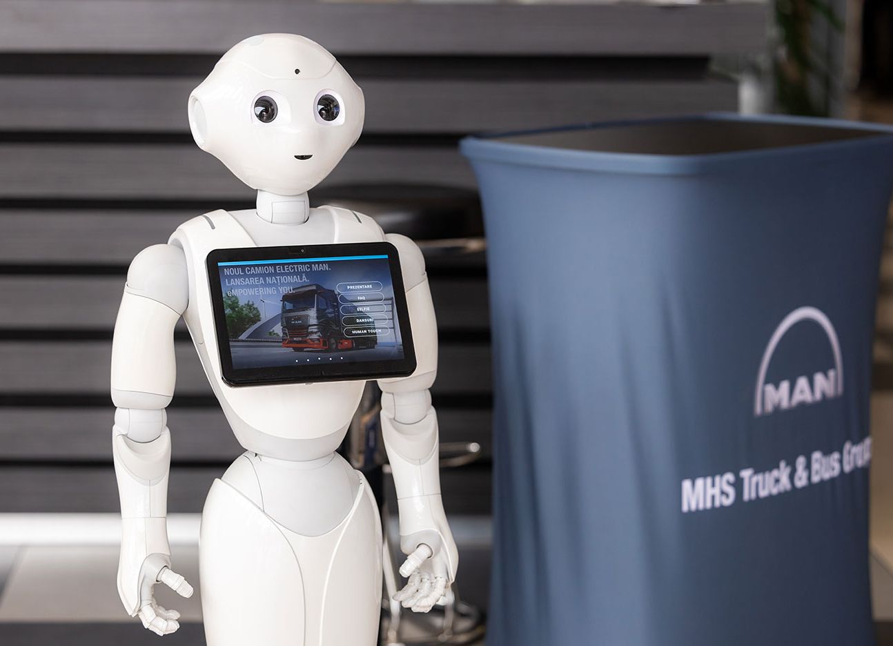 Evenimentul s-a desfășurat la Academia Titi Aur, unde invitații s-au putut bucura de o atmosferă plăcută și au fost întâmpinați de robotul Pepper, care a răspuns la toate întrebările lor despre noul autocamion electric MAN. Acesta a fost pus la dispoziție de IRIS Robotics, prin Orange România.