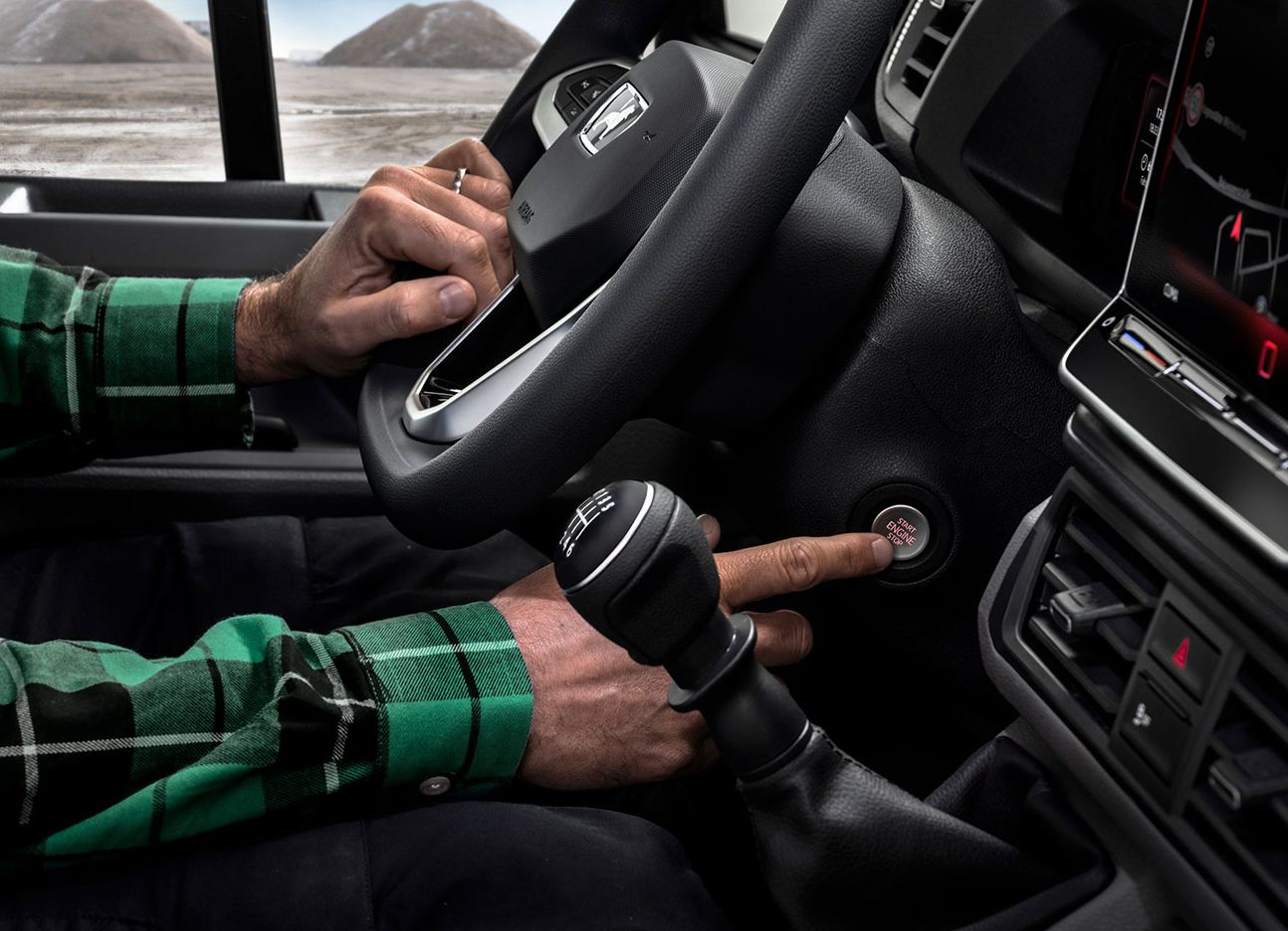 Acest lucru mărește spațiul disponibil în cabină, la fel ca și noua frână de parcare electronică, care este activată printr-un buton în habitaclu. Levierul de frână de mână anterior, de lângă scaunul șoferului nu mai este necesar. În plus, frâna de parcare electronică cu funcția „Auto Hold" asigură vehiculul împotriva rulării atunci când este oprită prin angajarea automată a frânei de parcare fără a fi necesar să se țină pedala de frână. Acest lucru reduce efortul șoferului, de exemplu, în traficul stop-and-go, când se oprește la semafoare sau la o trecere la nivel cu o pantă în sus sau în jos.