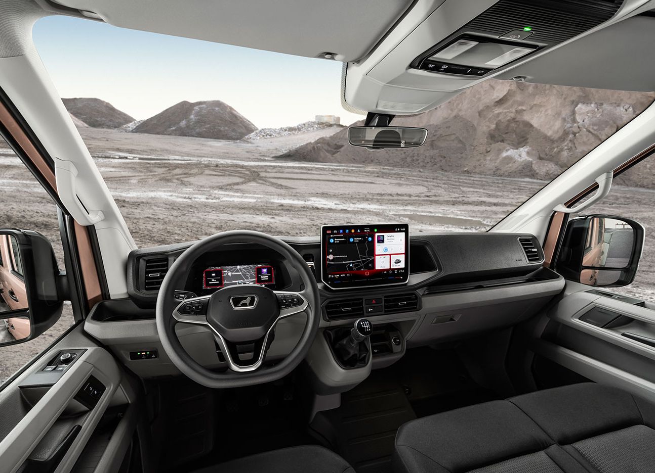 Tabloul de bord al MAN TGE a fost complet reproiectat și acum include un ecran tactil independent în centrul său. Volanul ergonomic, care poate fi folosit pentru selectarea directă a noilor sisteme de asistență, a fost, de asemenea, reproiectat. Noul grup de instrumente este complet digitalizat ca standard și oferă șoferului opțiuni extinse pentru personalizarea afișărilor și a informațiilor.