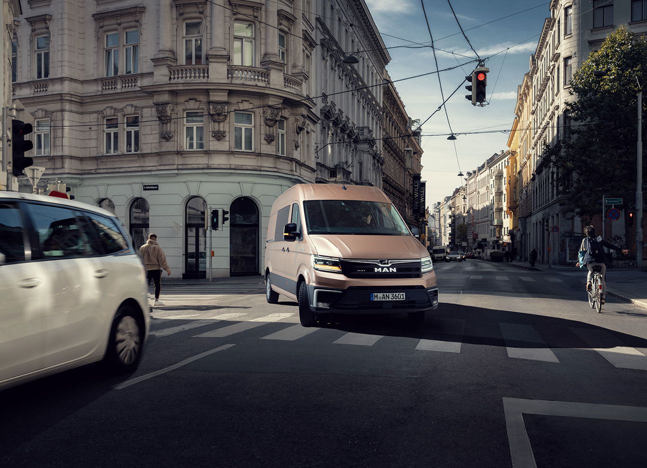 Vehiculele prezintă statutul de pre-serie. Echipamentul livrat standard și sistemele de asistență pot fi modificate. Sistemele de asistență ale MAN TGE cresc siguranța și ajută șoferul să evite accidentele în limitele capacităților tehnice ale sistemului. Echipamentul special este supus unei taxe suplimentare. Modificările și erorile sunt rezervate.