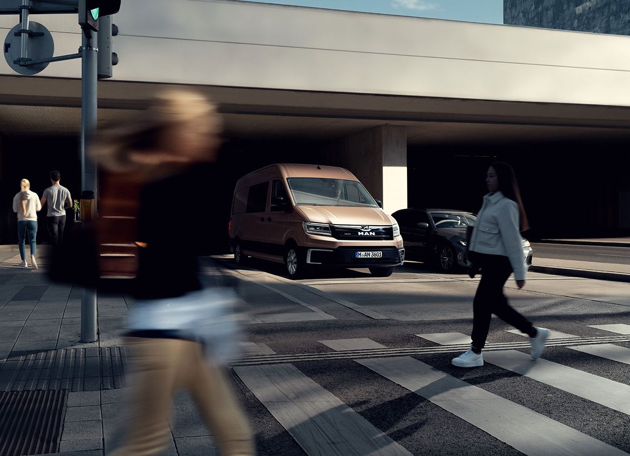 Progresul tehnologic al noilor unități de control, senzori și camere instalate în vehicul permite introducerea de sisteme de asistență noi și îmbunătățite. Unul dintre principalele motive pentru aceasta este puterea de calcul crescută sub capotă. Cu sistemele de asistență, MAN TGE oferă o protecție și mai bună pentru ocupanții vehiculului și pentru ceilalți participanți la trafic și contribuie la creșterea siguranței rutiere.
