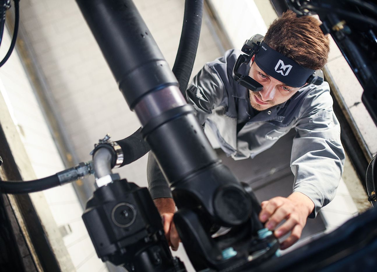 Inițial, MHS Truck & Bus Group a avut în vedere o strategie de instruire și diagnosticare la distanță, folosind dispozitive mobile și laptopuri robuste. Cu toate acestea, după o cercetare aprofundată, a constatat că dispozitivele portabile și laptopurile nu permiteau tehnicianului să folosească ambele mâini și, de asemenea, îl forțau pe tehnician să se uite în jos la ecran și nu la vehicul. Partenerul SETH al RealWear®, care acorda consultanță pentru MHS Truck & Bus Group, a recomandat soluțiile de realitate asistată RealWear®. Dispozitivul RealWear® este în același timp robust, compatibil cu vocea pentru comenzi simple și pentru aplicații Android optimizate pentru voce și funcționează perfect în medii zgomotoase datorită tehnologiei de anulare a zgomotului. Astfel, expertul poate vedea imediat și exact ceea ce vede tehnicianul prin camera montată pe cap, ceea ce face ca soluția să fie perfect potrivită pentru instruire și diagnosticare la distanță.