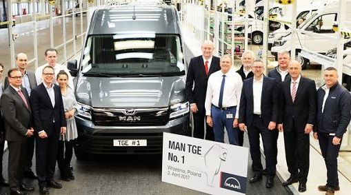 La o lună după lansarea vânzărilor, primul MAN TGE de serie iese de pe linia de producție a noii fabrici din Wrzesnia (Polonia). Echipele din jurul lui Jens Ocksen (CEO al Volkswagen Poznan) și Dennis Affeld (Vicepreședinte Van la MAN Truck & Bus) iau împreună în primire primul MAN TGE, o dubă argintie cu seria de șasiu …01.