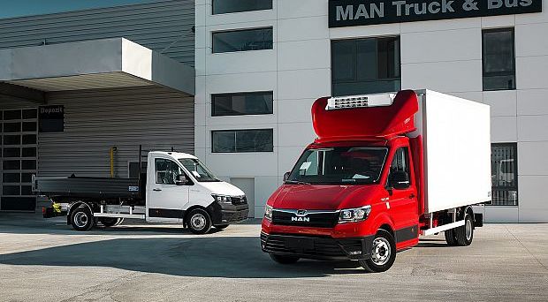 - două modele MAN TGE, cel mai mic model al gamei de vehicule comerciale MAN, în versiune MAN TGE 3.180 4x2 cu suprastructură frigorifică (certificare ATP) și MAN TGE 5.180, echipată cu benă basculabilă.